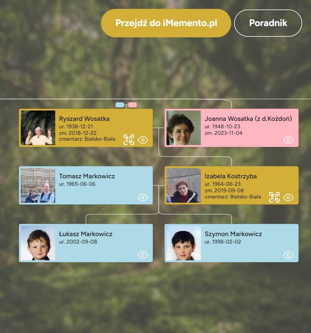 Drzewo może pozostać tylko online do wglądu dla Ciebie i bliskich, ale może też zostać połączone z grawerowanym kodem QR. Kod ten możesz zamieścić między innymi na nagrobku lub kolumbarium zmarłego członka rodziny zobrazowanej naszym drzewem.