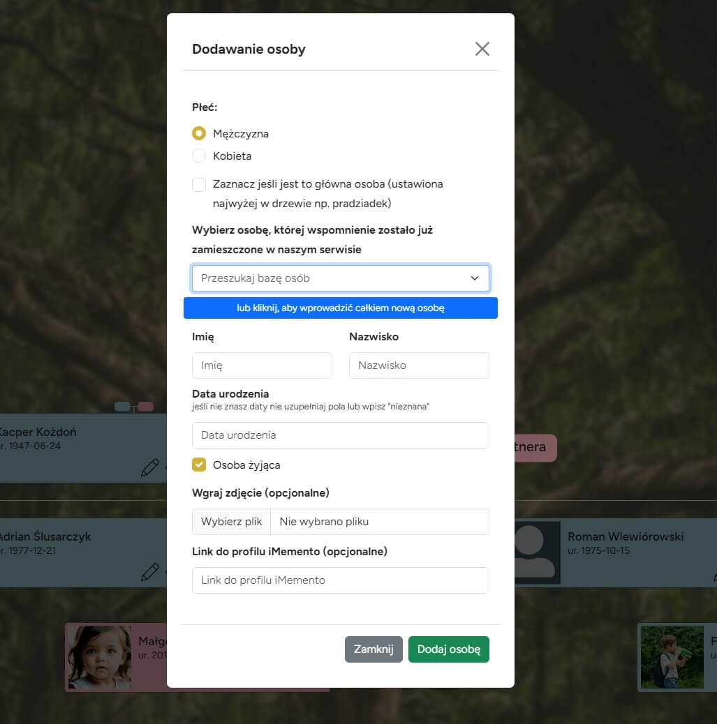 Chcesz stworzyć drzewo genealogiczne swojej rodziny? Z nami to proste! Dzięki intuicyjnemu kreatorowi w parę minut stworzysz drzewo całej rodziny. Możesz skupić się na podstawowych informacjach, lub dodać ich więcej, jak na przykład adres miejsca pochówku, aby za pomocą jednego przycisku odwiedzający mogli do niego trafić. Możesz wgrać zdjęcie lub połączyć drzewo z istniejącymi już w naszym serwisie wspomnieniami. Drzewo możesz zachować dla siebie, rozesłać bliskim i znajomym, jak również podłączyć do zakupionego u nas kodu QR, co pozwoli przeglądać je osobom odwiedzającym cmentarz, na którym jest on zamieszczany.